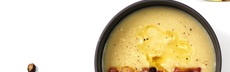 - Falls die Ackerbohnen (und Kartoffeln) nicht zu einem feinen Püree zerfallen sind, kann mit einem Mixer nachgeholfen werden.