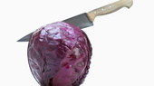 2. Zum Schneiden des Rotkohls eignet sich am besten ein großes Messer mit Wellenschliff.