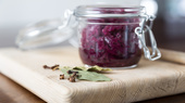Das "rote Sauerkraut" enthält ebenso wie die weiße Variante nützliche Milchsäurebakterien, die die Darmgesundheit fördern. Solch ein fermentierter Rotkohl ist reich an Vitaminen, Mineral- und Ballaststoffen.